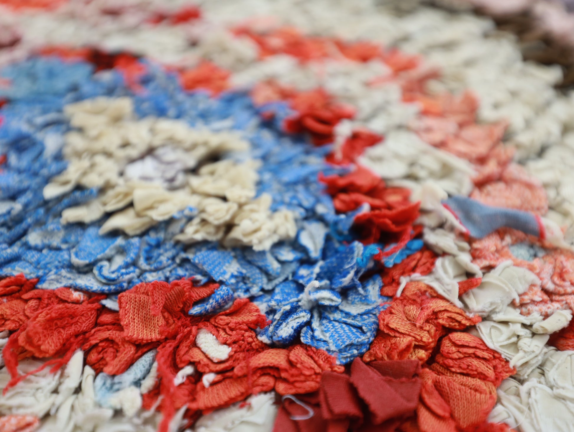 Unique masterpiece—sole piece in stock! Crafted from 100% wool pile on a cotton foundation.