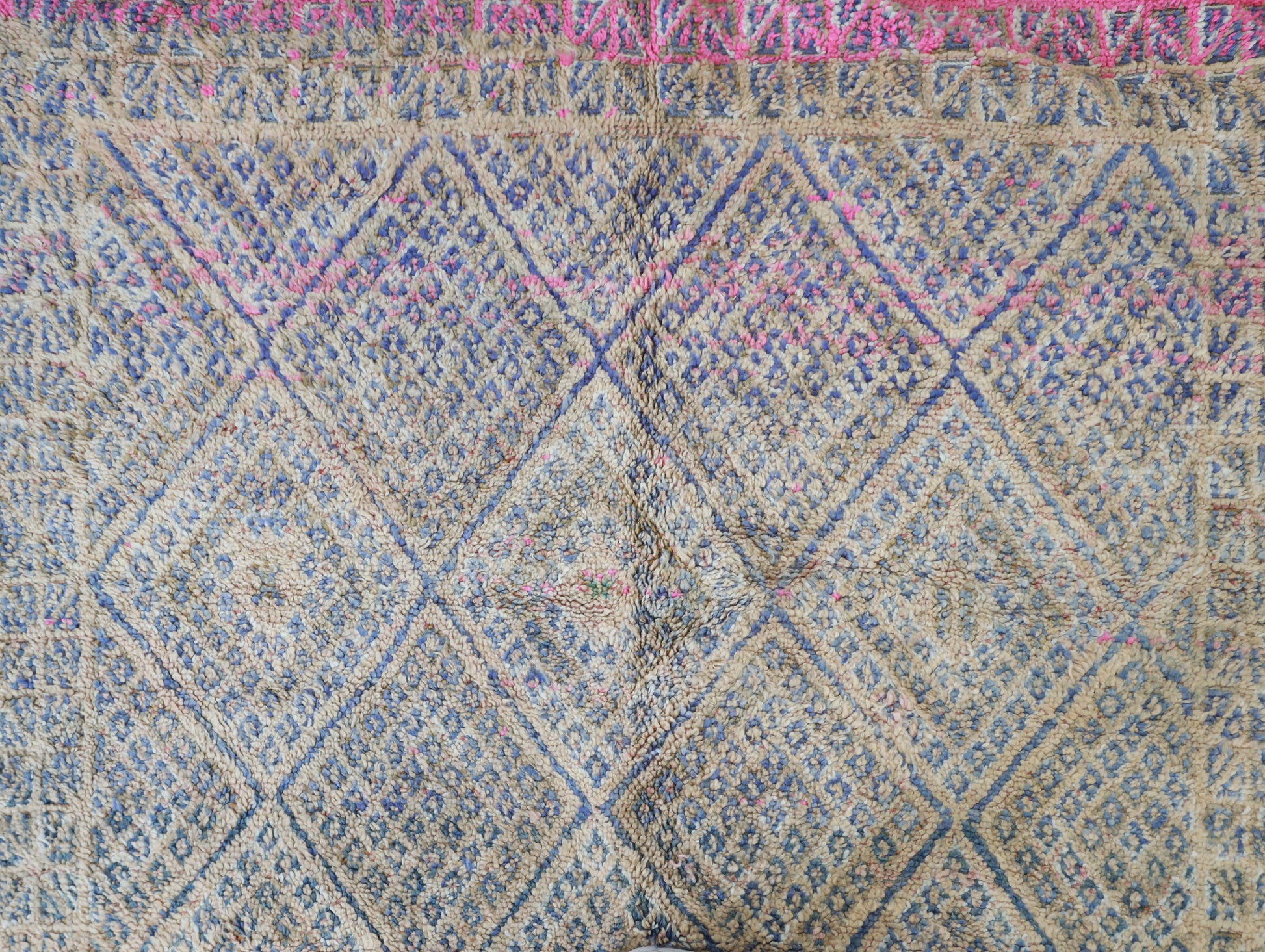 A truly unique vintage rug, meticulously hand-knotted by the Zemmour tribes from Morocco's Middle Atlas range. Size: 6'2" x11'2" (188cm x340cm),
