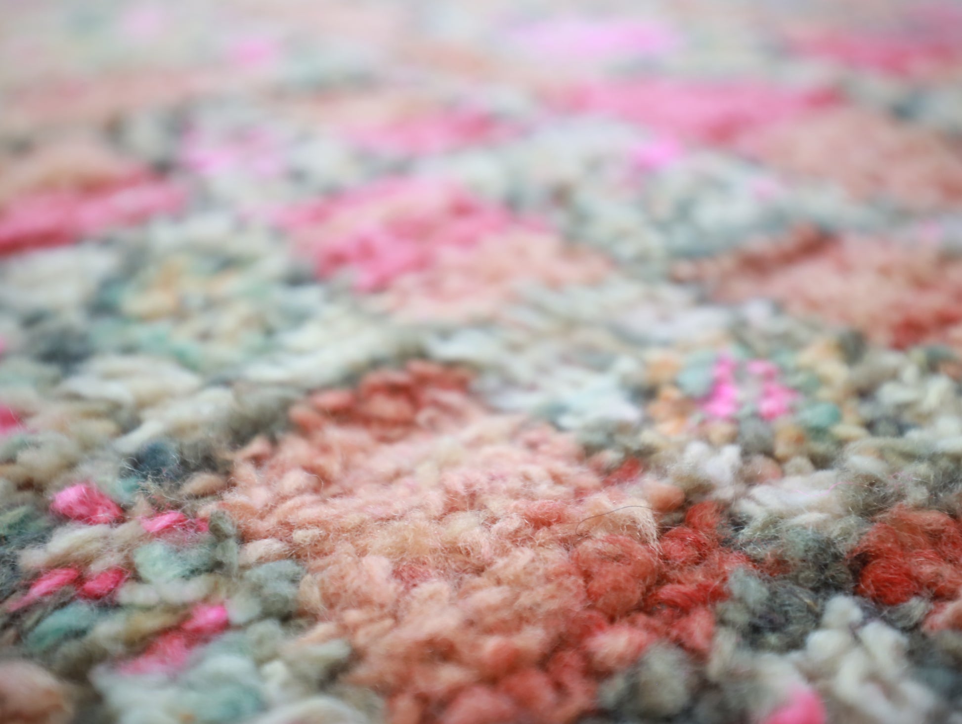 Wool, a sacred material for the Amazigh (Berber) people, forms the cornerstone of Moroccan rug design. Durable, long-lasting, and soft underfoot, wool is both functional and comfortable. In this piece, the wool pile is expertly knotted onto a wool foundation, adding substance and allowing it to gracefully embrace the floor.