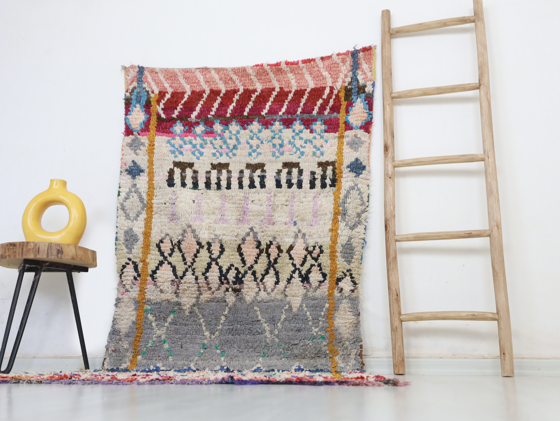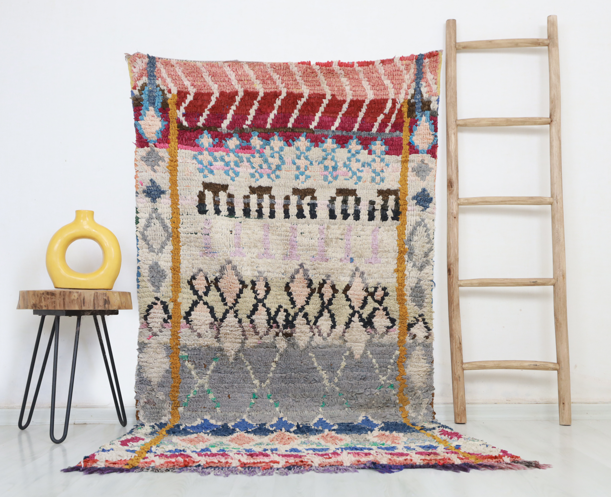 Azilal rugs boast abstract, painterly designs reminiscent of rugs from Ourika. What sets them apart is a vibrant color palette, achieved through the incorporation of cotton alongside wool..