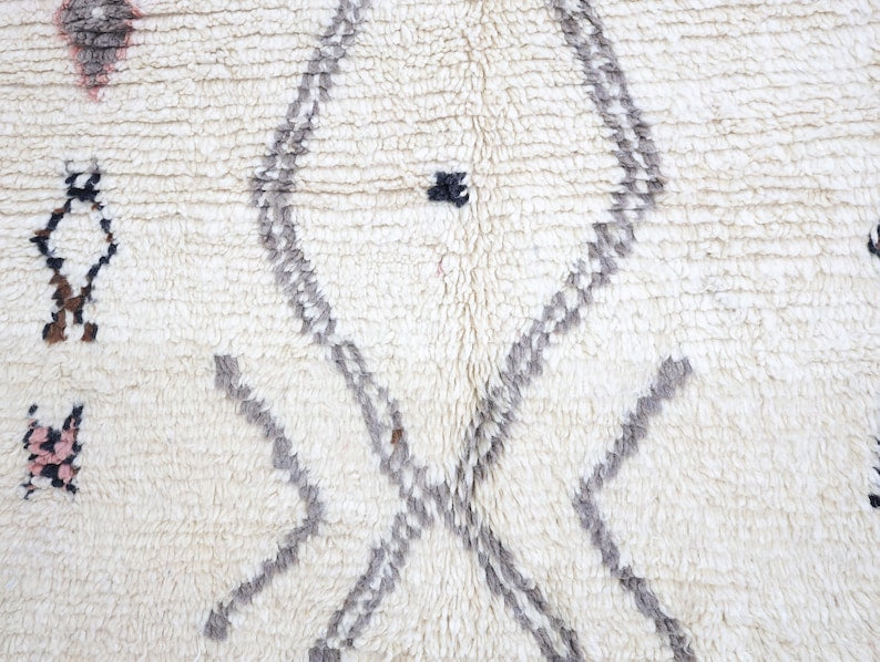 Wool, a sacred staple for the Amazigh (Berber) people with their nomadic lifestyle, takes center stage in Moroccan rug design. In this intricate creation, the wool pile is meticulously knotted onto a wool foundation, adding substance and allowing it to gracefully embrace the floor.